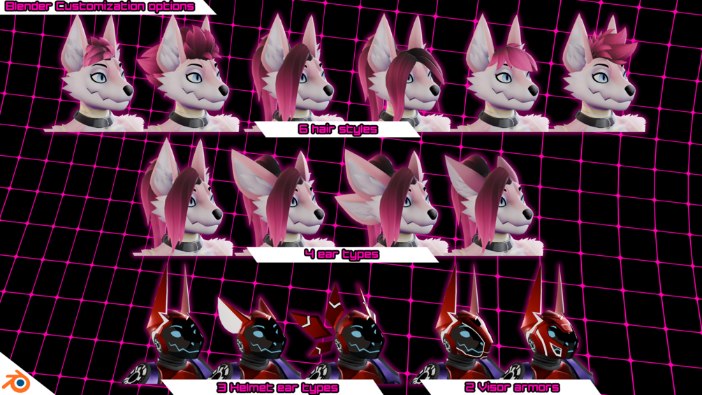 9 Material slots : Body, Head, Hair, Armor, Infinity Mirror, Transparent, Trail, Gyroform Core, HUD (Local only).
